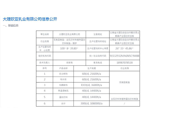 大理歐亞乳業有限公司信息公開